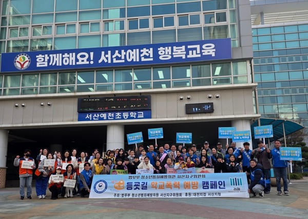 충청남도서산교육지원청(교육장 김지용)은 2026년 4월 2일(목), 서산예천초등학교 통학로에서 등굣길 학교폭력 예방 캠페인을 실시했다.
